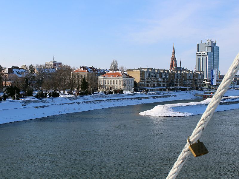Osijek je smješten na tek 20 km od ušća Drave s Dunavom, na samoj sredini njegova 2850 km dugog toka od njemačkog Schwartzwalda do Crnog mora.
