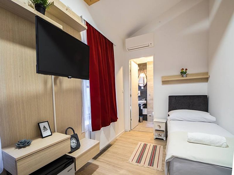 Svaka spavaonica kao i sve sobe imaju zasebnu kupaonicu, klimu, TV i besplatni Wi-Fi te ormariće na zaključavanje vrijednosti, odjeće i ostalih potrepština svakog gosta.