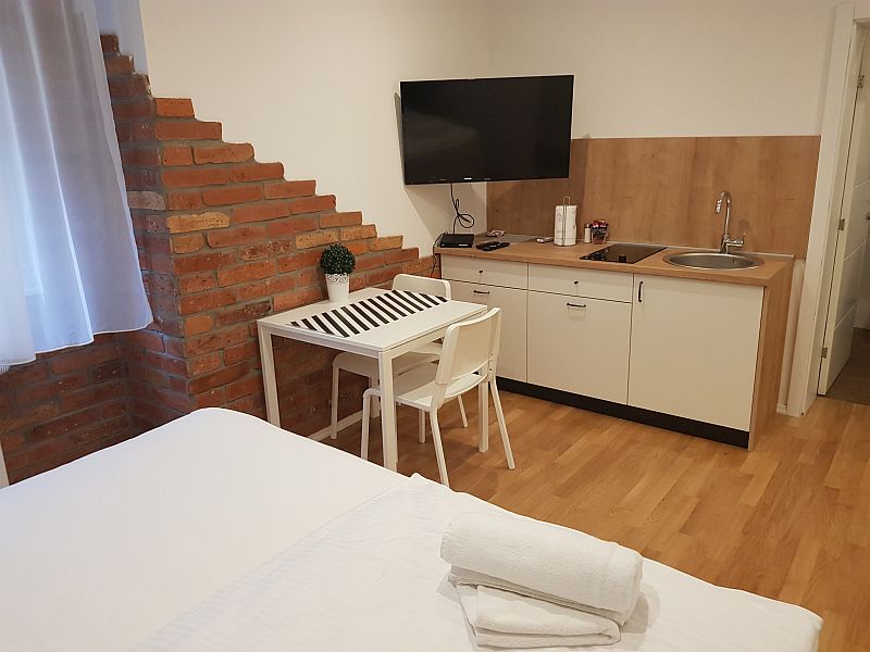Možete birati između 3 apartmana i 1 studio apartmana ukoliko nas posjećujete sa obitelji ili prijateljima ili između 4 jednokrevetne sobe ukoliko želite svoju privatnost. Ukupan smještajni kapacitet je 20 osoba.