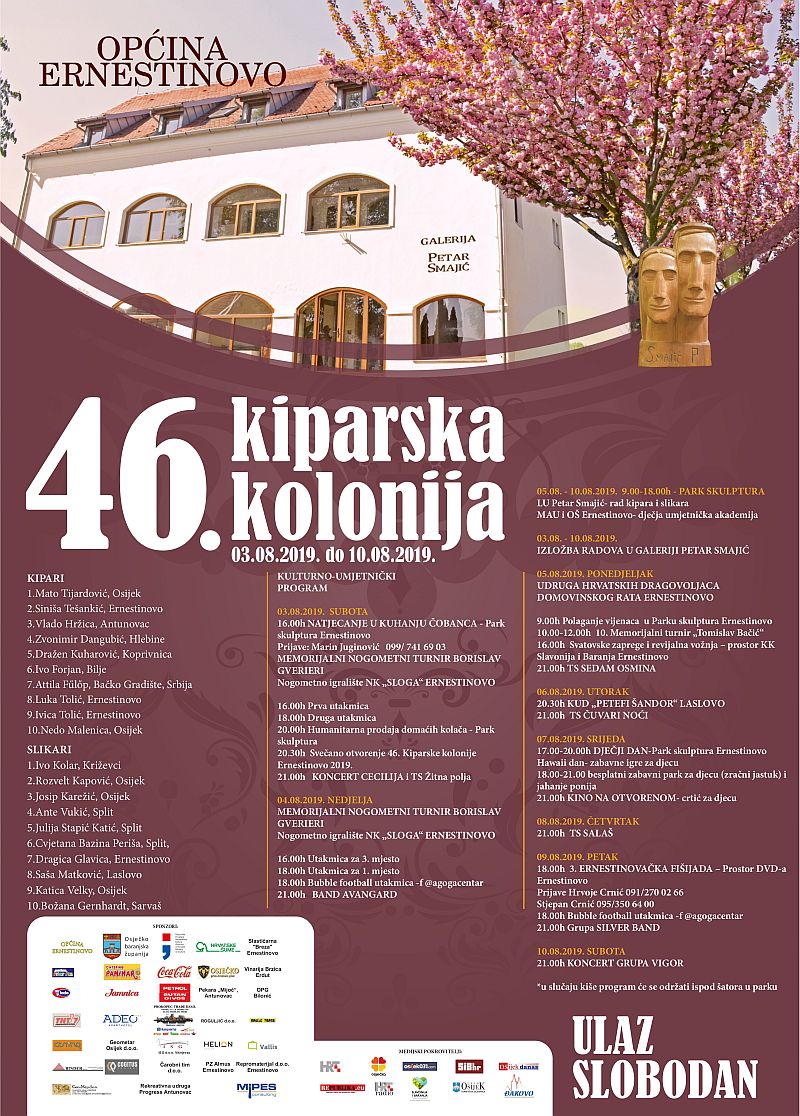PROGRAM 46. KIPARSKE KOLONIJE ERNESTINOVO 03. - 10.08.2019.