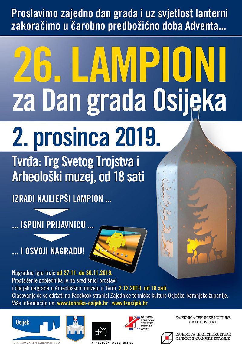 Po 26. put zaredom održat će se još jedna popularno zvana osječka Lampioniada. Kao i zadnjih nekoliko godina mjesto susreta svih vrijednih učitelja i učenika koji su cijele jeseni izrađivali lampione je Arheološki muzej u Tvrđi (Trg Svetog Trojstva 2).