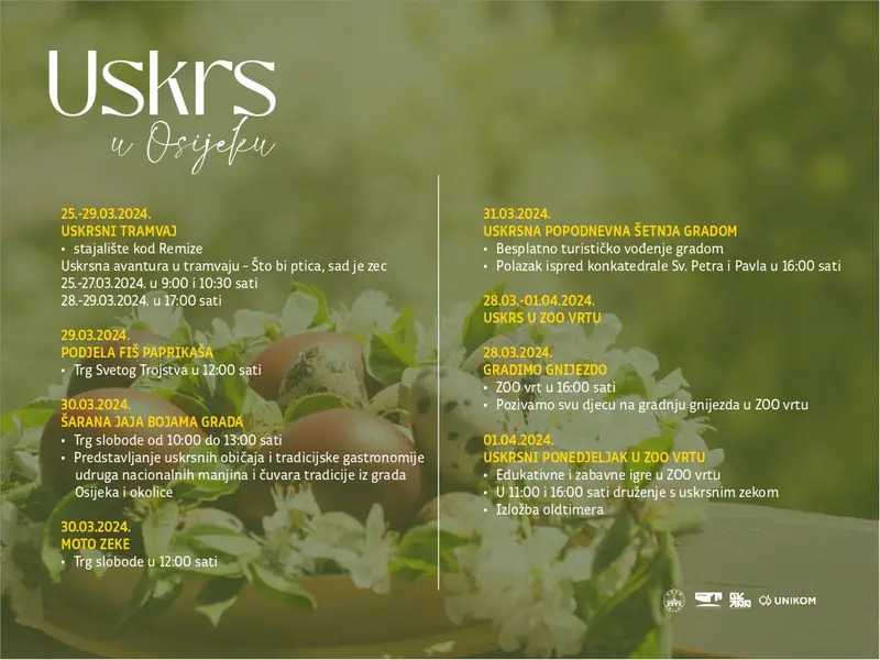 Pridružite nam se u proslavi proljeća i Uskrsa u Osijeku, gdje tradicija susreće zabavu, a zajedništvo stvara nezaboravne uspomene.