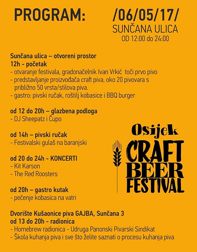 2. Osječki Craft Beer Festival u Sunčanoj ulici, kod kušaonice piva „Gajba“ u subotu 6. svibnja od 12 do 24 sata, od podneva do ponoći – morate biti dio ove velike pivske zabave „malih“ pivara!