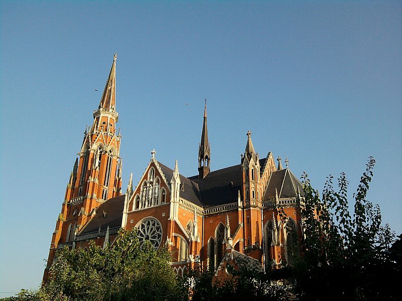 By the initiative of Bishop Josip Juraj Strossmayer in 1894 began the construction of the church of St. Peter and Paul, co-cathedral of the Đakovo-Osijek Archdiocese. That is why citizens of Osijek simply call it “the cathedral". After the demolition of an earlier Baroque church it was built in only four years and since 1898 the panorama of Osijek is best known for its 90-meter high bell tower that's second highest in Croatia and south Eastern Europe. It was built in red brick in neo-gothic style and its builders were German architects Franz Langenberg and Richard Jordan. Painting the walls with frescoes was executed by the famous Croatian painter Mirko Rački. The church has five bells. The largest one is also the third largest in Croatia weighing more than 2.5 tons dedicated to St. Peter and Paul, located in the main tower above the clock. In the War for Croatian Independence in 1991 it was hit more than a hundred times by Yugoslavian Army and currently is pending a complete renovation. It is interesting that in the German metropolis of Köln the somewhat younger church of the Secret Heart of Jesus stands and is almost an exact copy of the Osijek Cathedral.