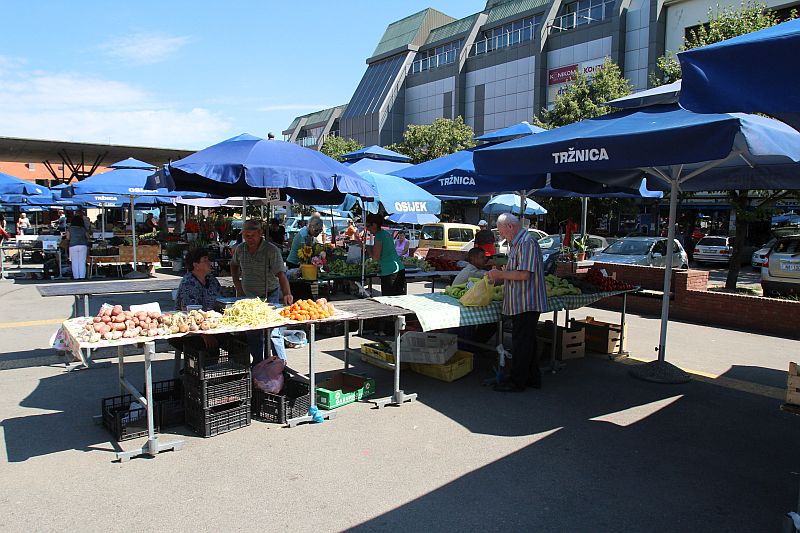 One of the two central squares in the Upper town is the Liberty Square which a part of a large the pedestrian zone that connects Ulica Hrvatske Republike Street with the Drava river Promenade and the main square. Probably the most famous shopping center in Osijek is located here, the Supermarket which opened in 1967. On the northern junction with the promenade there are two monuments. In the passage along the Capuchin monastery stands the statue of Franjo Krežma, famous violinist who in his short career managed to become the concertmaster of Bilse Orchestra, forerunner of Berlin Philharmonics. The next monument was erected in memory of the first Croatian president Franjo Tuđman, founder of the free and democratic Republic of Croatia in 1990. Unfortunately process of independence from communist Yugoslavia was conducted in war conditions. In the memory of that event a third monument was placed in the south of the square. Monument to soldiers and victims of the Croatian War for independence was built in 2005. Next to it there is the fourth statue, favourite the famous writer August Cesarec, in this pedestrian zone simply called “the Walker”.