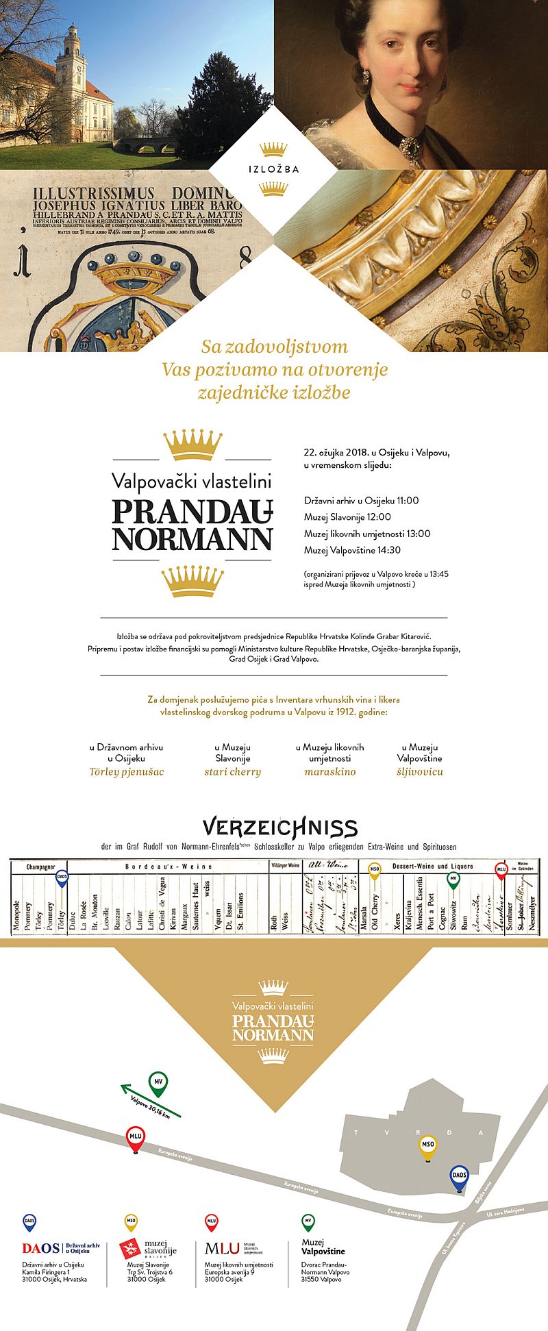 Muzej likovnih umjetnosti u Osijeku, Državni arhiv u Osijeku, Muzej Slavonije i muzej u Valpovu najavljuju novi izložbeni projekt – Valpovački vlastelini, predstavljanjem vrijedne muzejske i arhivske građe obitelji Prandau-Normann pohranjenu u brojnim zbirkama kroz tematske cjeline:
