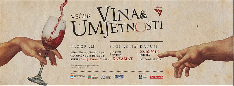 Pratite službeni Facebook događaj “ Večer vina i umjetnosti @Kazamat / Tvrđa / 22.10.“ na kojem možete pronaći više informacija o događaju.