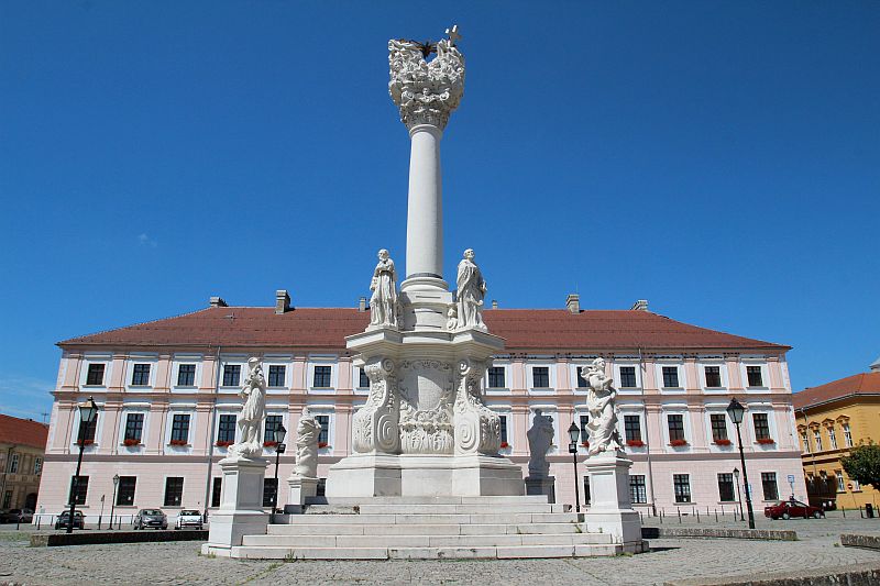 Glavnim trgom u starom gradu, Tvrđi, dominira barokni kip Sv. Trojstva. Izgrađen je 1729. godine, kao zavjetni kip Osječana dragom Bogu da se kuga koja je prethodno poharala grad više nikada ne vrati. Legenda pak kaže da su gradske štakore pa time i kugu istrijebile simpatične životinjice koje su Osječani u velikom broju naselili u grad – kune (zanimljivo je kako su Osječani i u kasnijim stoljećima u borbi protiv nametnika posezali za "eko-rješenjima" pa je u novinama s početka 20. stoljeća zapisano da su u poplavne šume oko grada, posebice u Baranji, naselili šišmiše kako bi pomogli smanjiti broj dosadnih komaraca)! Po mnogima kip Sv. Trojstva u Osijeku je najljepši barokni spomenik u Hrvatskoj. Slični zavjetni kipovi postoje u mnogim gradovima pa i selima u Slavoniji i Baranji te diljem nekadašnjeg Austro-ugarskog carstva. Na istočnom uglu trga stoji zgrada Glavne gradske straže s tornjem-stražarnicom izgrađena početkom 18.stoljeća, a u njoj se danas nalazi Arheološki odjel Muzeja Slavonije. Dijagonalno na uglu nalazi se Muzej Slavonije. Ispred njega raste prastaro stablo ginka, ostatak nekadašnjeg velikog parka. Na suprotnoj zapadnoj strani trga na uglu nalazi se Glazbena škola Franje Kuhača. Rođeni Osječanin, Kuhač je u drugoj polovini 19. stoljeća postao poznat kao sakupljač slavenske glazbene narodne baštine. Svojim istraživanjem dokazao je kako su poznati svjetski skladatelji Ludwig van Beethoven i Joseph Haydn, po majci Hrvat, u svojim djelima često posuđivali dijelove hrvatske tradicijske glazbe. Zanimljivo je kako Haydnova melodija današnje njemačke himne potječe od stare hrvatske pjesme "Stal se jesem rano jutro malo pred zoru" iz Međimurja i austrijskog Gradišća, iako ju je Haydn "posudio" kako bi skladao carsku himnu Bože živi, Bože štiti (Gott erhalte, Gott beschütze).