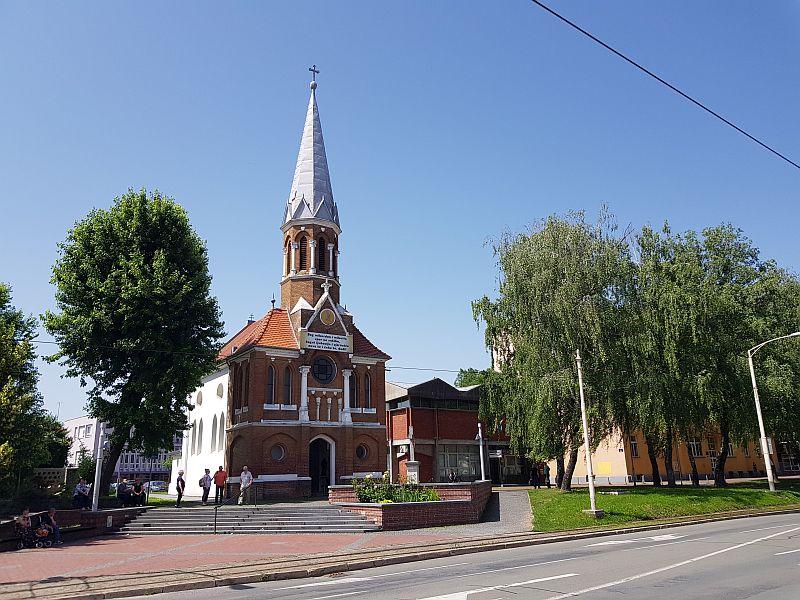 Nešto istočnije od Katoličke crkve nalazi se Evanđeoska pentakostalna crkva Radosne vijesti zanimljive te izvana i iznutra očuvane arhitekture Židovskog hrama, čemu je po izgradnji 1903. godine i služila. Iako sličnog naziva, ovu bogomolju ne treba zamijeniti s Evangeličkom crkvom koja se pak nalazi u Gornjem gradu.
